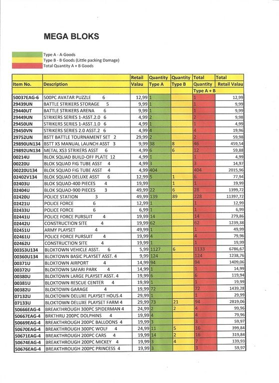- B-marchandises des articles: 948 pcs (= B-produits d'emballage peu de dégâts)