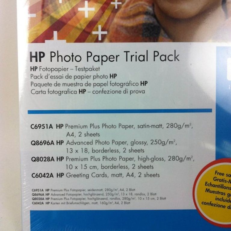 - 2 feuilles (HP Q8028A) Premium Plus Photo Paper, haute brillance, 280g/m2, 10 x 15 cm sans marge.