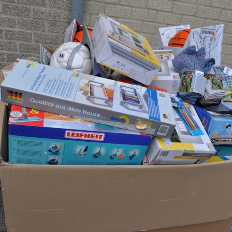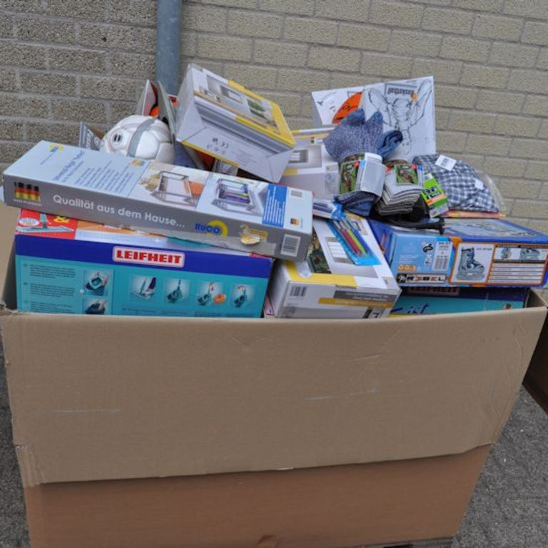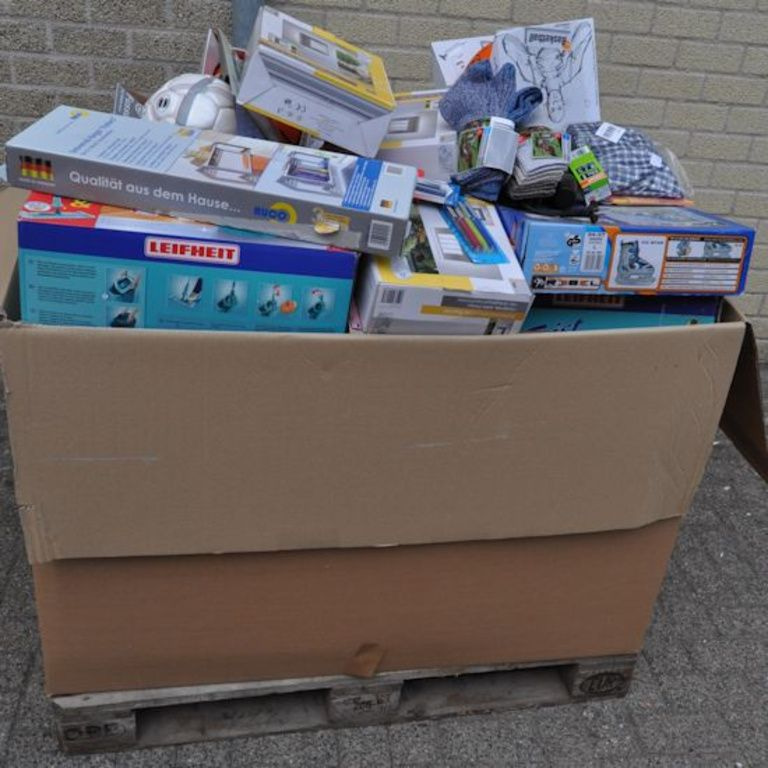 Cette boîte de palette contient: Oa articles ménagers, jouets, outils, articles de bureau, etc