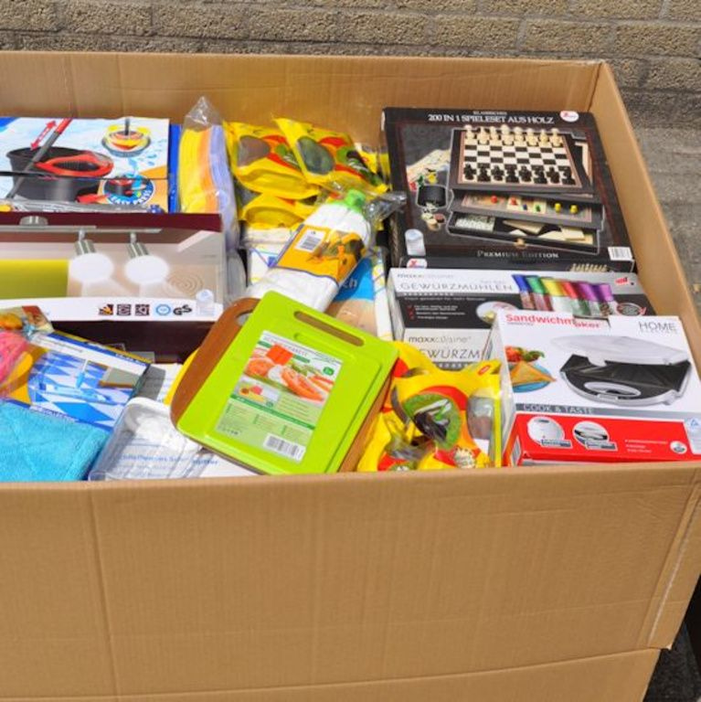 Cette boîte de palette contient: Oa articles ménagers, jouets, outils, articles de bureau, etc
