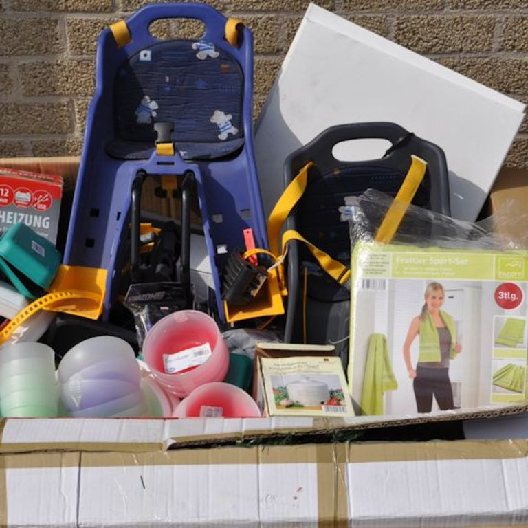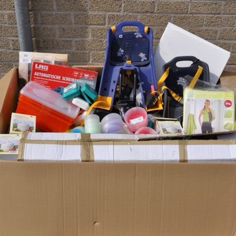 Cette boîte de palette contient: Oa articles ménagers, jouets, outils, articles de bureau, etc