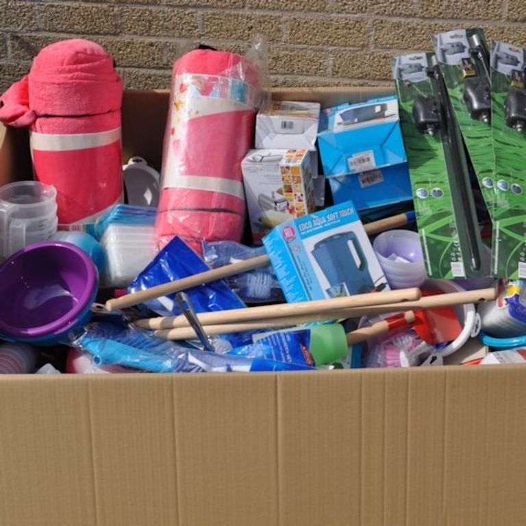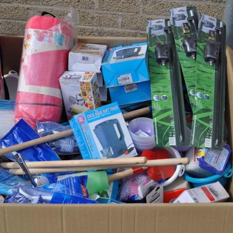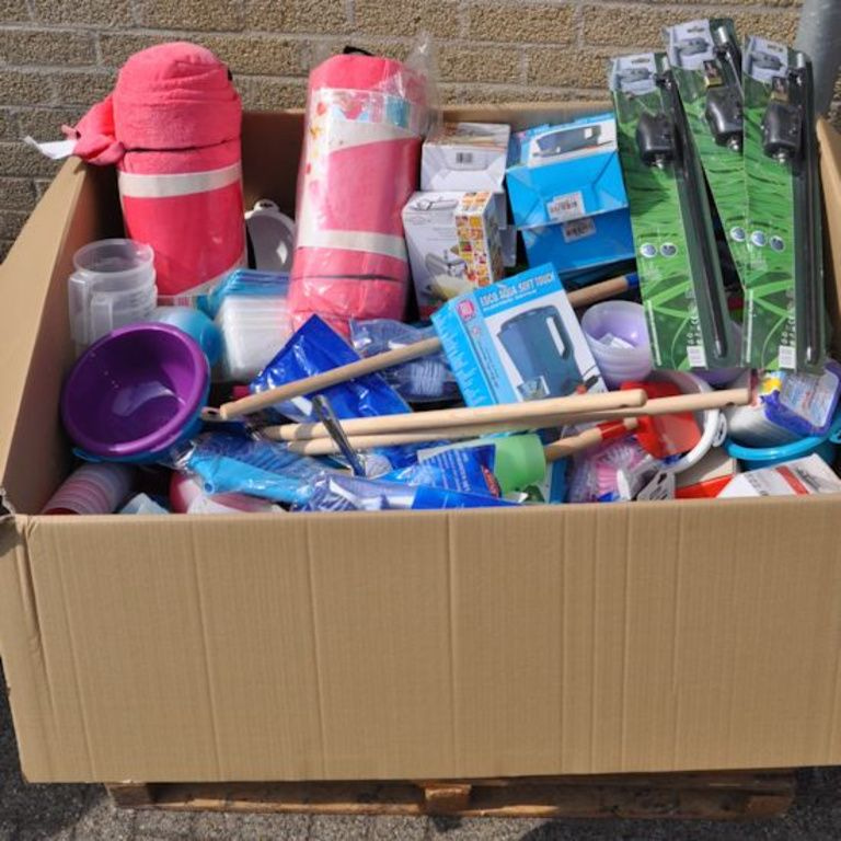 Cette boîte de palette contient: Oa articles ménagers, jouets, outils, articles de bureau, etc
