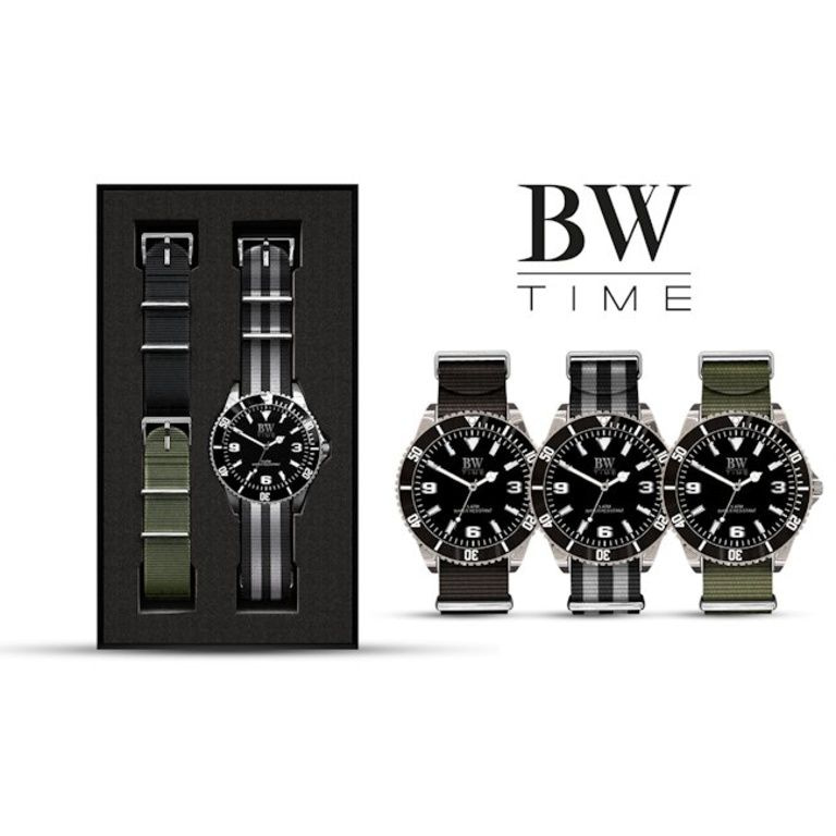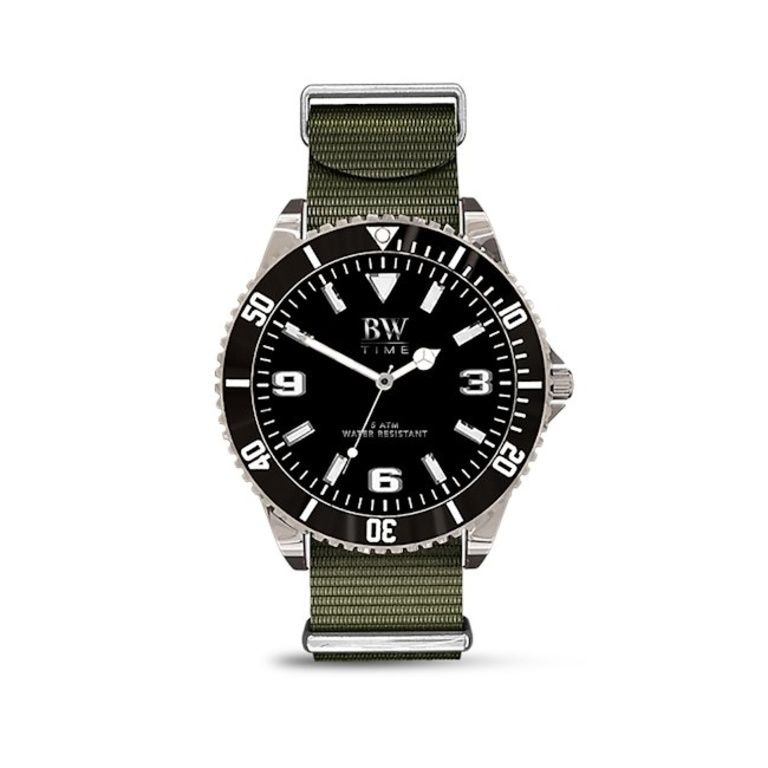 * Bracelet Nato bande en noir, kaki et noir rayé / gris