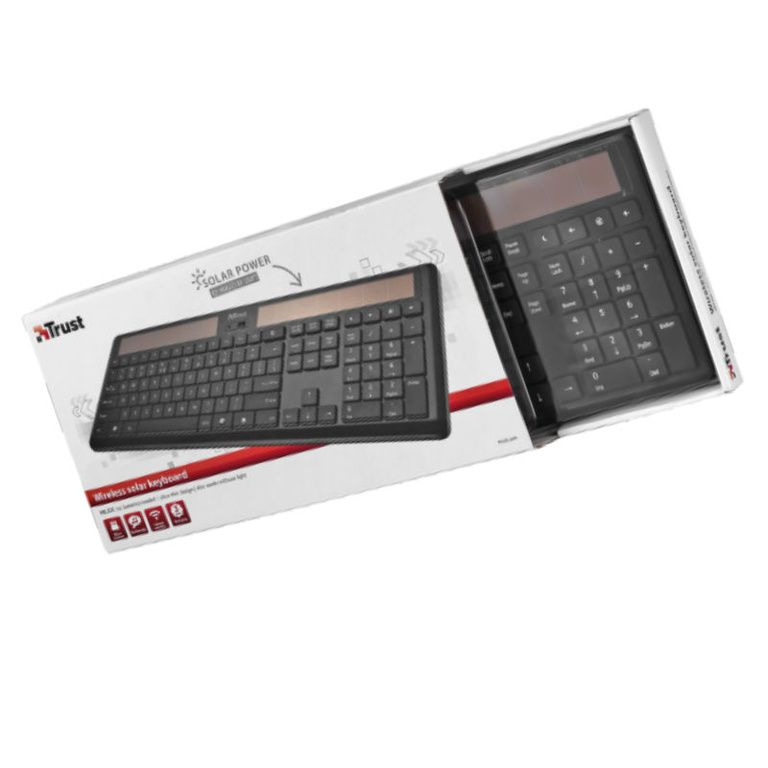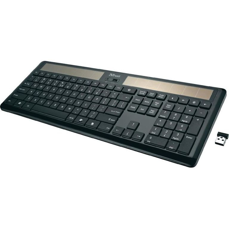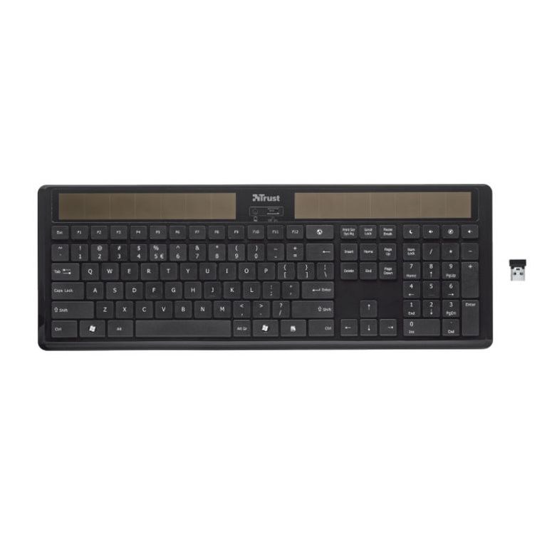 Clavier sans fil avec des cellules solaires; Le chargement se fait par la lumière du soleil ou la lumière du jour, donc pas besoin de piles.