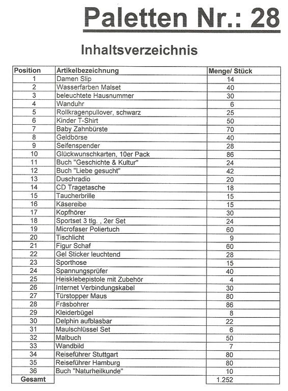 Palette Contenu: 1.252 articles St. plusieurs!
