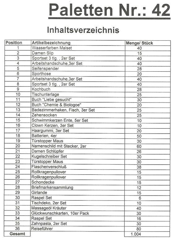 Palette Contenu: 1004 articles St. plusieurs!