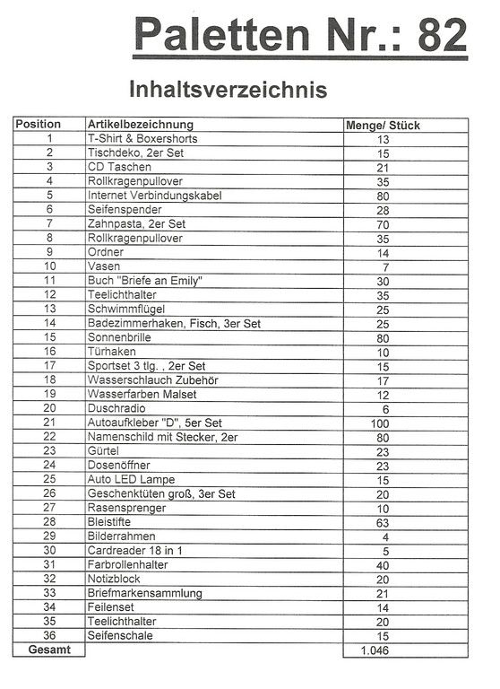 Palette Contenu: 1.046 articles St. plusieurs!