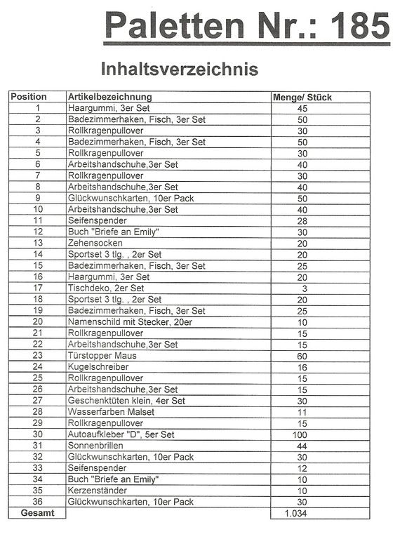 Palette Contenu: 1.034 articles St. plusieurs!