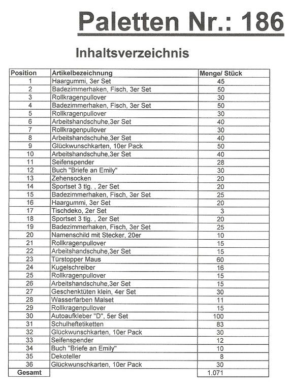 Palette Contenu: 1.071 articles St. plusieurs!