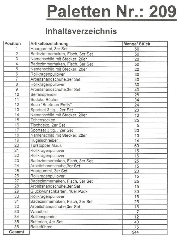 Palette Contenu: 944 articles St. plusieurs!