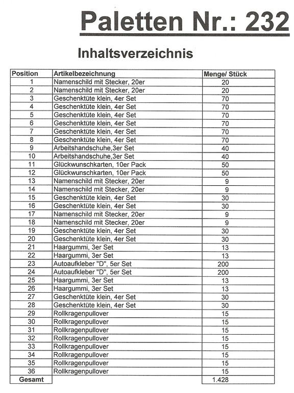 Palette Contenu: 1.428 articles St. plusieurs!