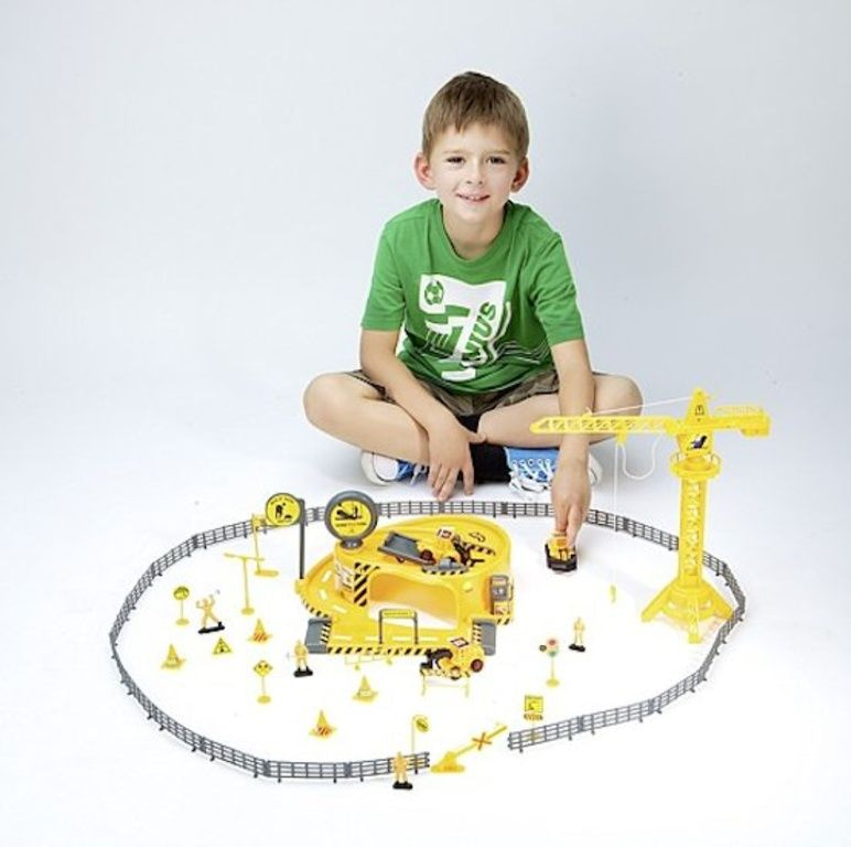Livré avec une grue, trois véhicules,