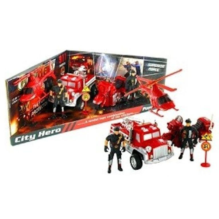 Lecture du feu difficile ensemble composé de: pompe à incendie, moteur, hélicoptère, pompiers et de nombreux accessoires.