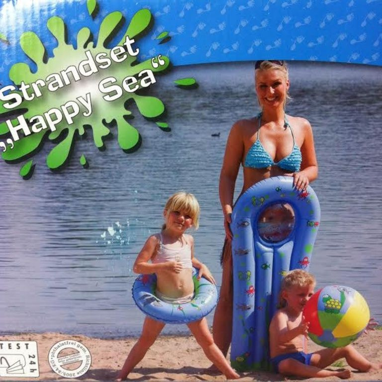matelas à air, ballon de plage et un anneau gonflable.