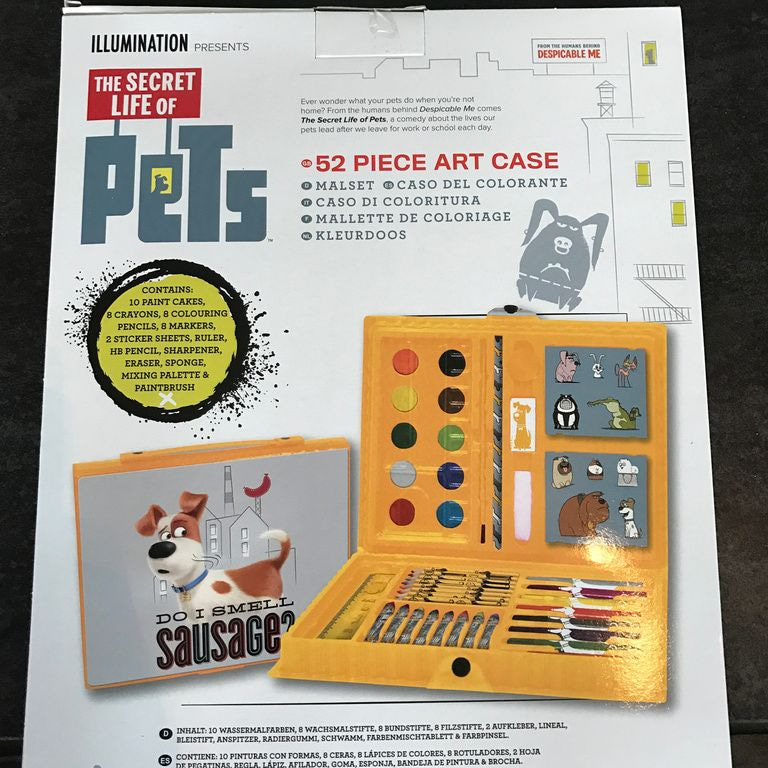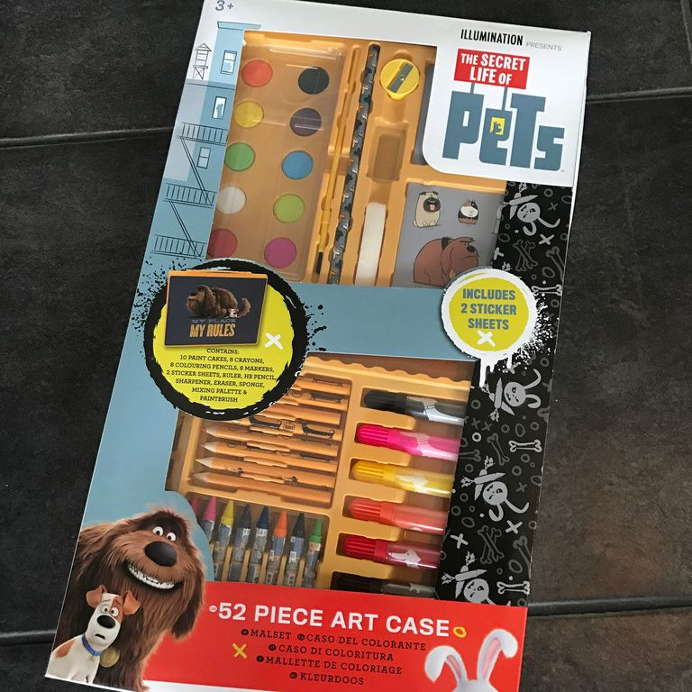 Cette boîte de couleur est composée de 52 parties, crayons, feutres, crayons, marqueurs, taille-crayons et des autocollants, etc. emballé dans un étui de rangement.